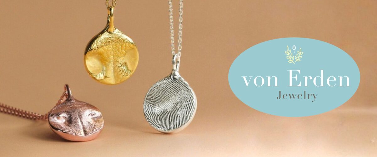 von Erden Jewelry verwandelt den echten Abdruck deines Vierbeiners – Pfote oder Nase – in ein handgefertigtes Schmuckstück aus Silber oder Gold.
