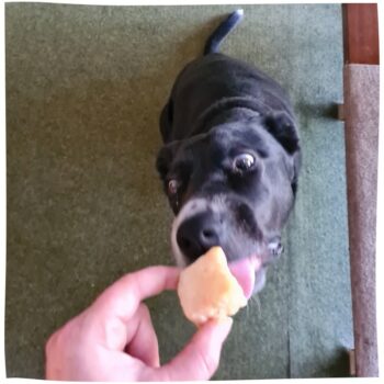 Nala fand alle Produkte total spannend und hat sich dann als erstes für die Kaustange entschieden. Die wurde direkt komplett aufgegessen.