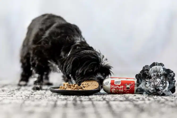 Willy war von Anfang an begeistert. Der Geruch ist nicht aufdringlich. So kann man die schnittfeste Wurst in den Napf packen, ohne dass die ganze Wohnung nach Hundefutter riecht.